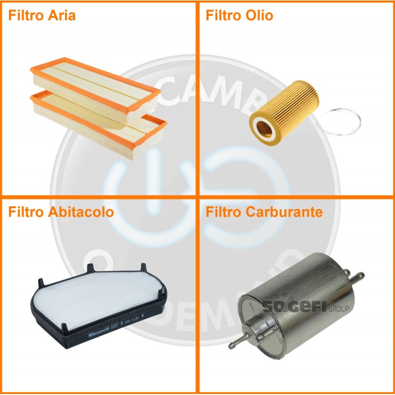 ComposizioneFiltro abitacolo, Filtro aria, Filtro benzina, Filtro olio