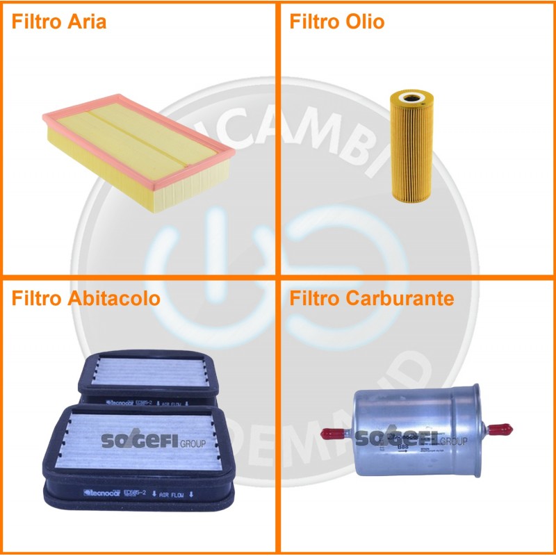 ComposizioneFiltro abitacolo ai carboni attivi, Filtro aria, Filtro benzina, Filtro olio