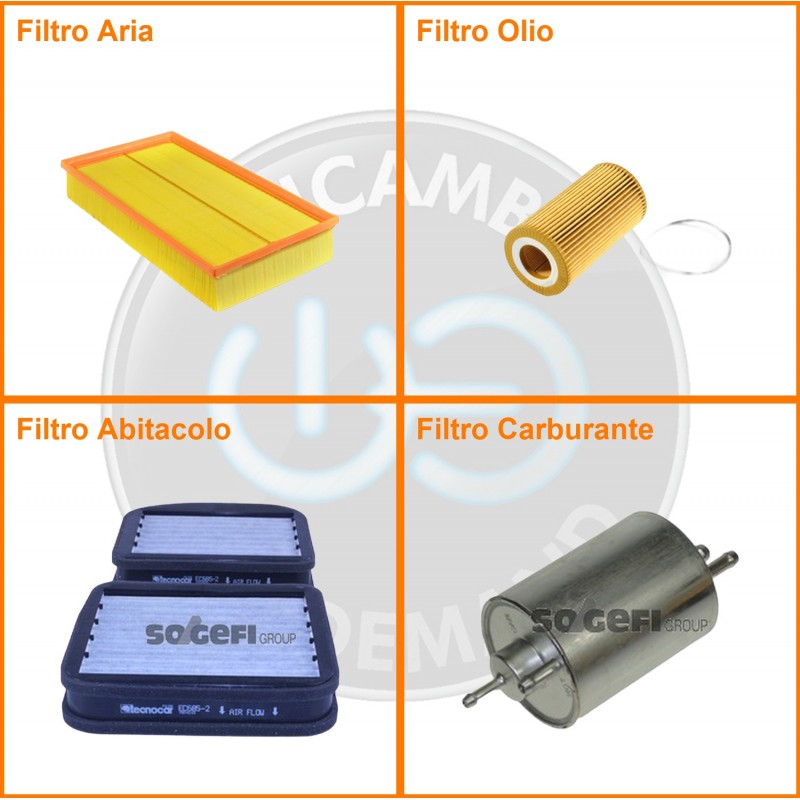 ComposizioneFiltro olio, Filtro abitacolo ai carboni attivi, Filtro aria, Filtro benzina