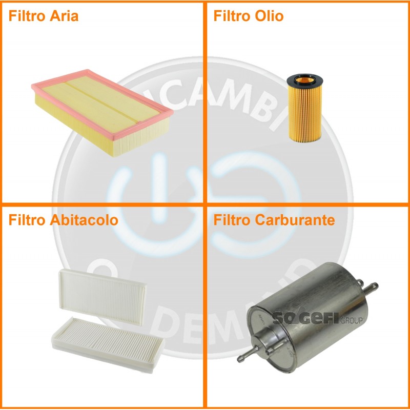 ComposizioneFiltro benzina, Filtro olio, Filtro abitacolo, Filtro aria