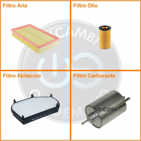 ComposizioneFiltro abitacolo, Filtro aria, Filtro benzina, Filtro olio