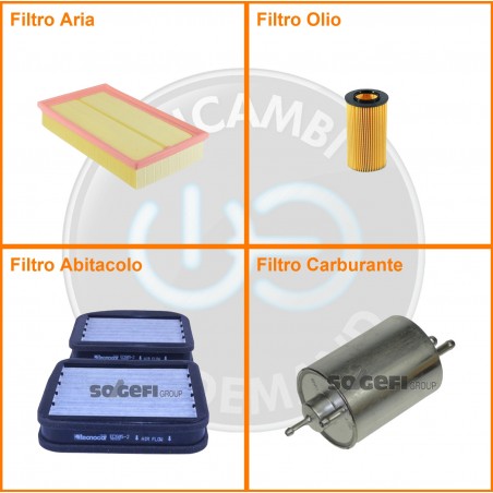 ComposizioneFiltro abitacolo ai carboni attivi, Filtro aria, Filtro benzina, Filtro olio