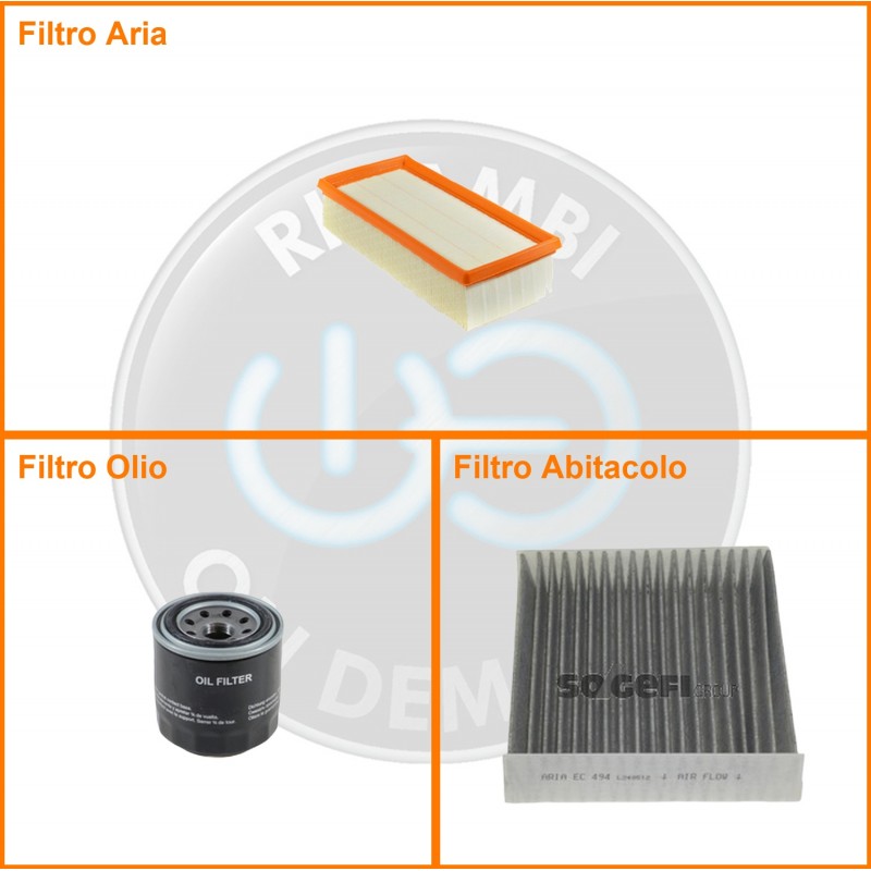 | Composizione | Filtro abitacolo ai carboni attivi, Filtro aria, Filtro olio |