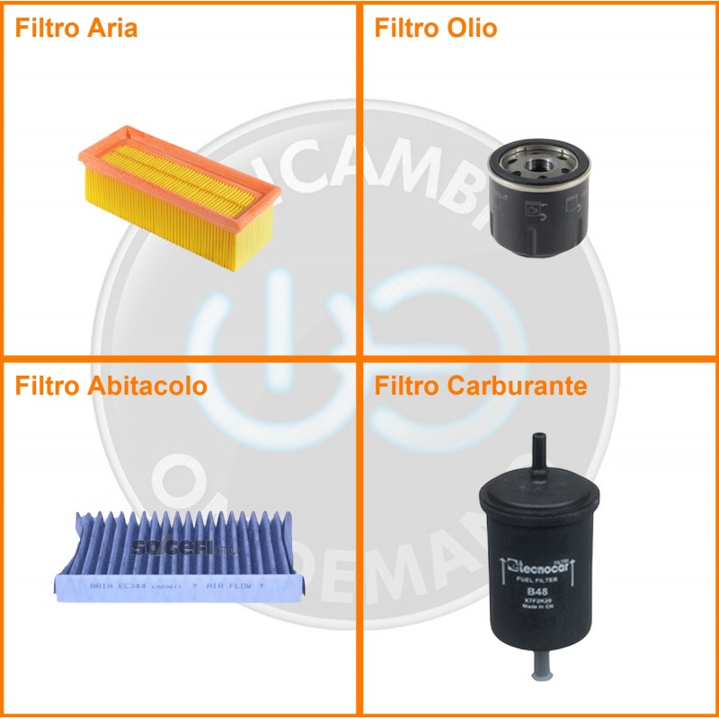 ComposizioneFiltro benzina, Filtro olio, Filtro abitacolo ai carboni attivi, Filtro aria