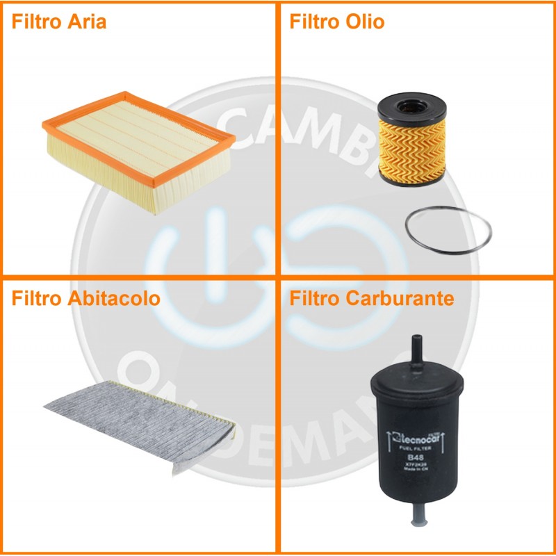 | Composizione | Filtro abitacolo ai carboni attivi, Filtro aria, Filtro benzina, Filtro olio |