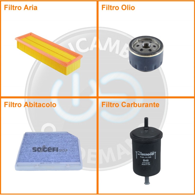 | Composizione | Filtro abitacolo ai carboni attivi, Filtro aria, Filtro benzina, Filtro olio |