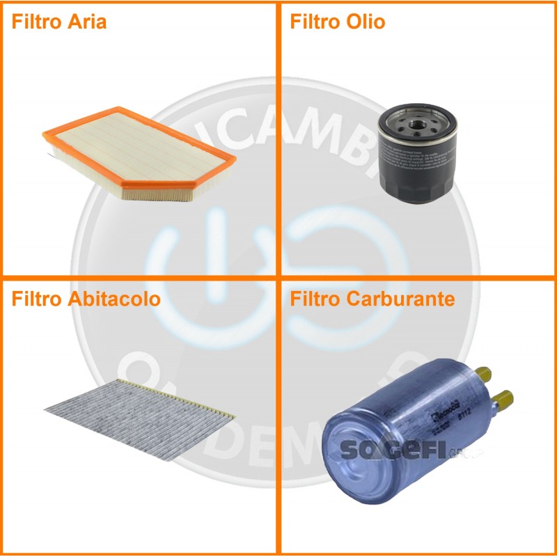 | Composizione | Filtro abitacolo ai carboni attivi, Filtro aria, Filtro benzina, Filtro olio |