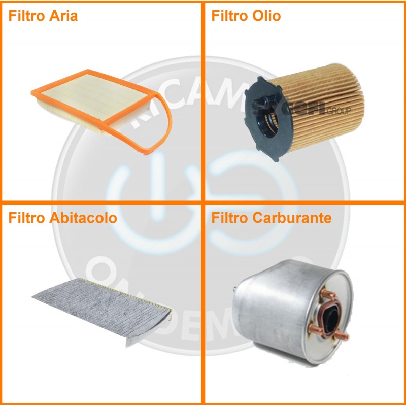 | Composizione | Filtro gasolio, Filtro olio, Filtro abitacolo ai carboni attivi, Filtro aria |