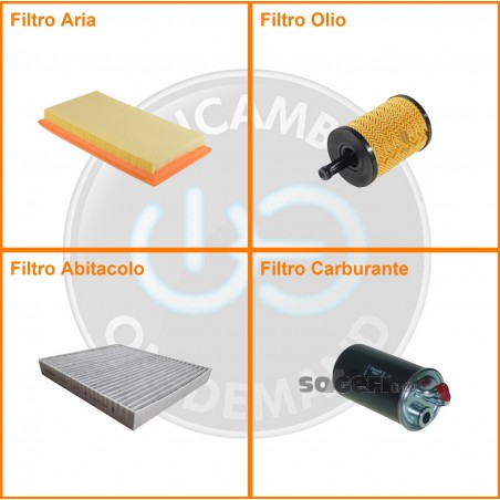 | Composizione | Filtro gasolio, Filtro olio, Filtro abitacolo ai carboni attivi, Filtro aria |