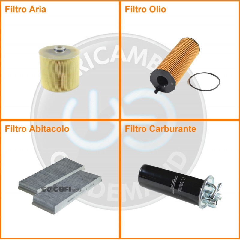 | Composizione | Filtro gasolio, Filtro olio, Filtro abitacolo ai carboni attivi, Filtro aria |