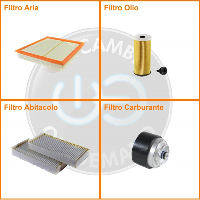 | Composizione | Filtro abitacolo, Filtro aria, Filtro gasolio, Filtro olio |