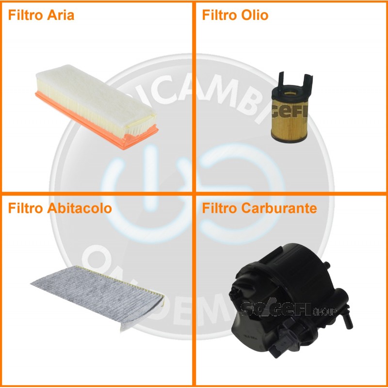 | Composizione | Filtro gasolio, Filtro olio, Filtro abitacolo ai carboni attivi, Filtro aria |