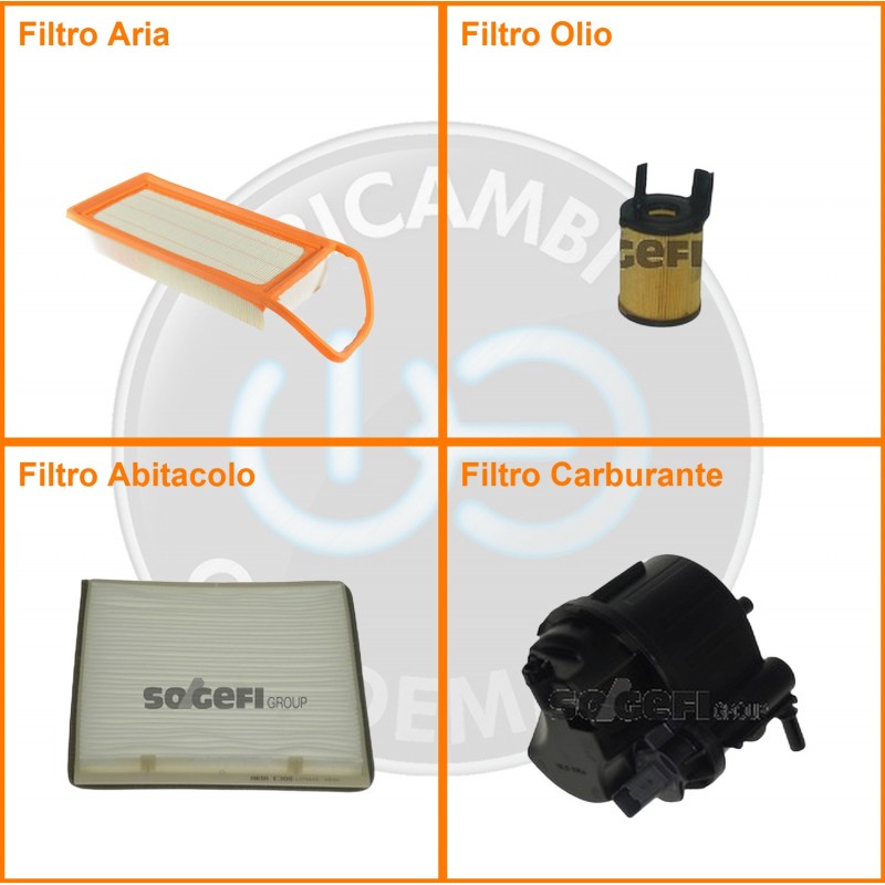 | Composizione | Filtro gasolio, Filtro olio, Filtro abitacolo, Filtro aria |