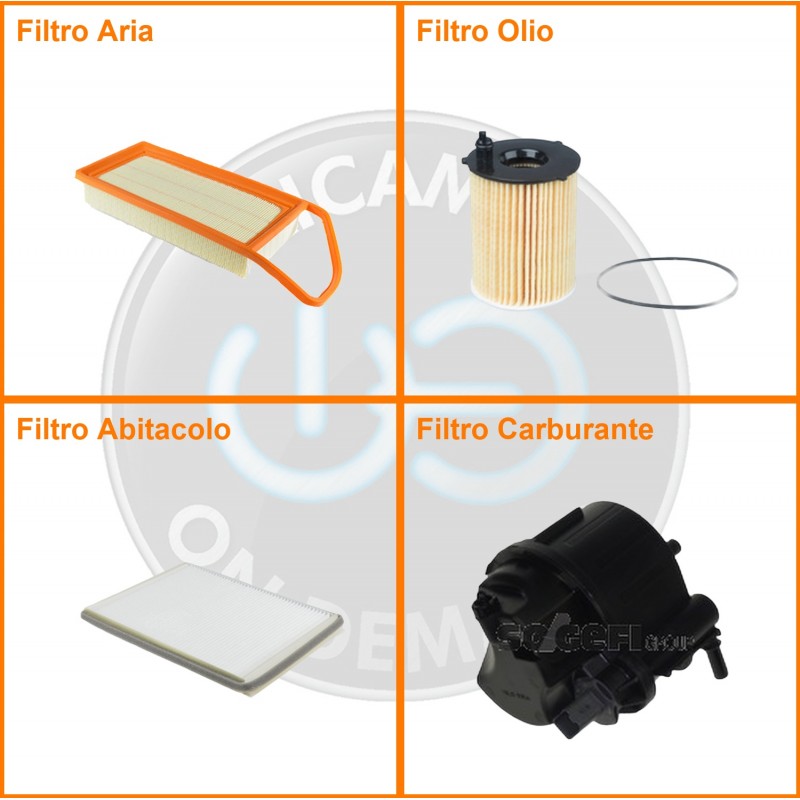 | Composizione | Filtro gasolio, Filtro olio, Filtro abitacolo, Filtro aria |