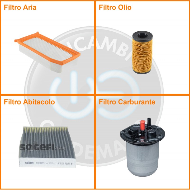 | Composizione | Filtro gasolio, Filtro olio, Filtro abitacolo ai carboni attivi, Filtro aria |