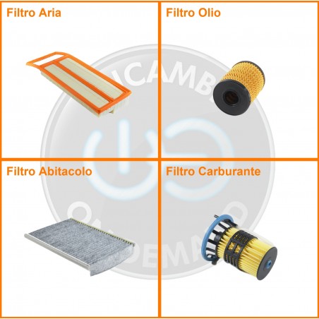| Composizione | Filtro gasolio, Filtro olio, Filtro abitacolo ai carboni attivi, Filtro aria |