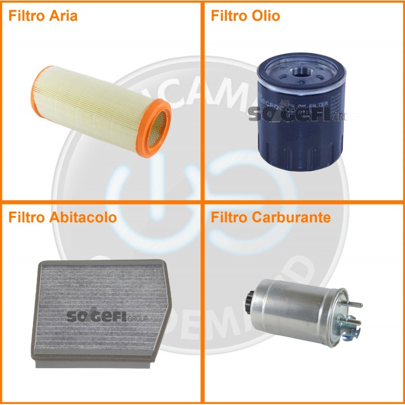| Composizione | Filtro gasolio, Filtro olio, Filtro abitacolo ai carboni attivi, Filtro aria |