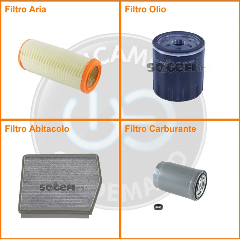 | Composizione | Filtro gasolio, Filtro olio, Filtro abitacolo ai carboni attivi, Filtro aria |