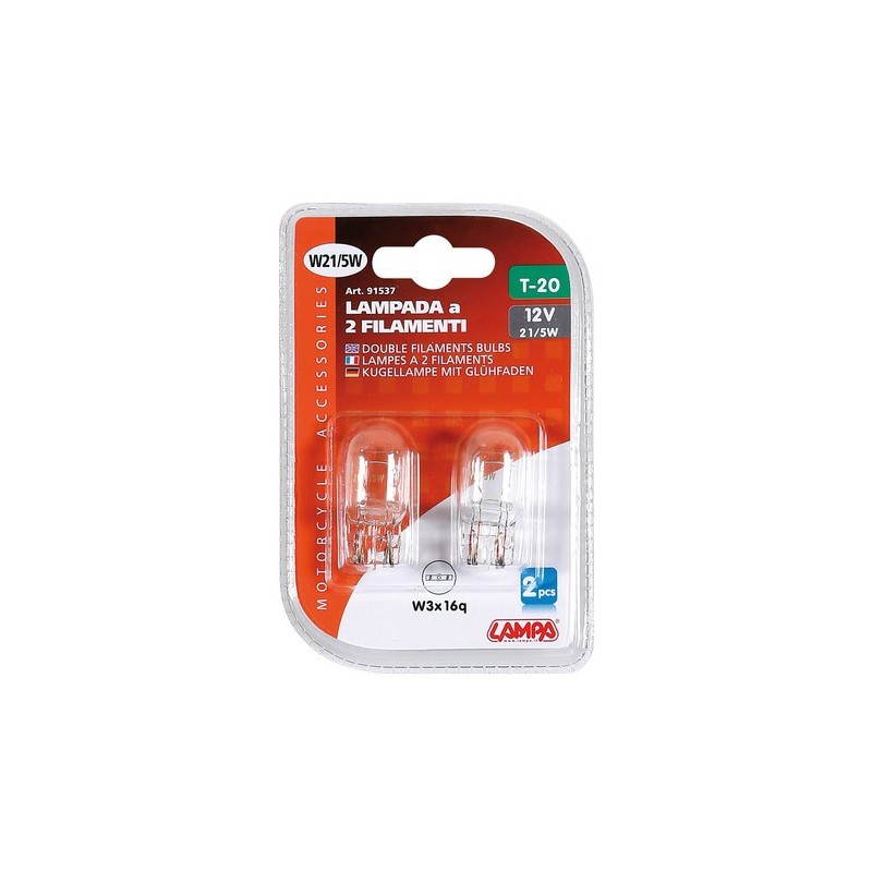 12V Lampada zoccolo vetro - W21/5W - 21W - W3x16q - 2 pz in blister