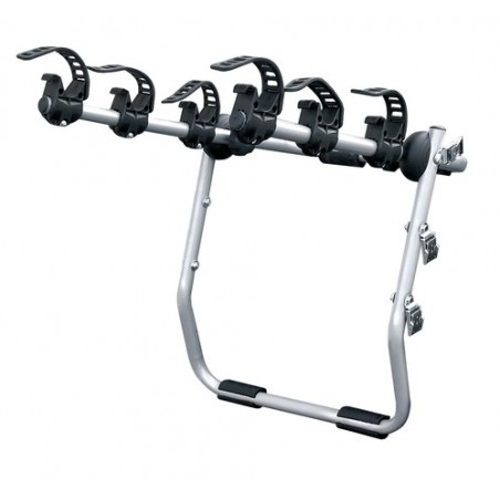 Compatibile con i modelli di biciclette ad intelaiatura triangolare. Montaggio facile e veloce senza fori. Realizzato in tubo tondo dacciaio diametro 25 mm. Sostegni e cinghie di fissaggio in plastica antigraffio. Snodi di regolazione in nylon per una perfetta adattabilita a qualsiasi vettura. Sicuro e versatile per il trasporto di 3 biciclette.