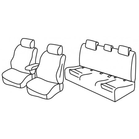 CaratteristicaSedili anteriori con retro in plastica rivestita, Airbag, Con o senza bracciolo anteriore, Poggiatesta posteriori ribassati, Poggiatesta anteriori non rimovibili, Schienale e sedile posteriore in un pezzo unico, Isofix