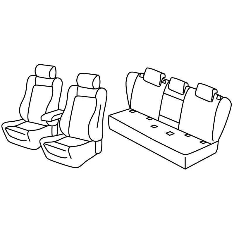 | Caratteristica | Sedile posteriore in un pezzo unico, Cintura di sicurezza centrale posteriore incorporata nello schienale, Sedili anteriori con retro in plastica, Airbag, Schienale posteriore ripiegabile [1/3 + 1/3 + 1/3], Isofix, Bracciolo posteriore con portabevande incorporato, Sedili anteriori sportivi [tipo Recaro], Con o senza bracciolo anteriore, Poggiatesta anteriori non rimovibili |