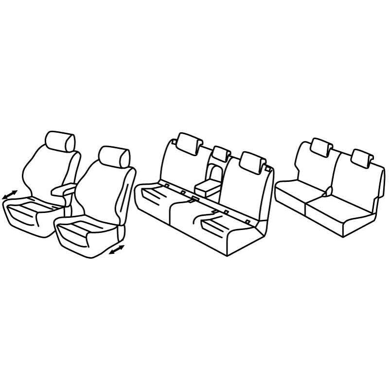 | Caratteristica | Sedili anteriori con retro in plastica, Sedile posteriore ripiegabile [1/3 + 2/3], Schienale posteriore ripiegabile [1/3 + 1/3 + 1/3], Terza fila con sedile e schienale posteriori ripiegabili [1/2 + 1/2], Sedili anteriori scorrevoli, Sedili anteriori ergonomici, Airbag, Bracciolo posteriore, Isofix, Con o senza bracciolo anteriore, fodera copre solo la posizione arretrata |