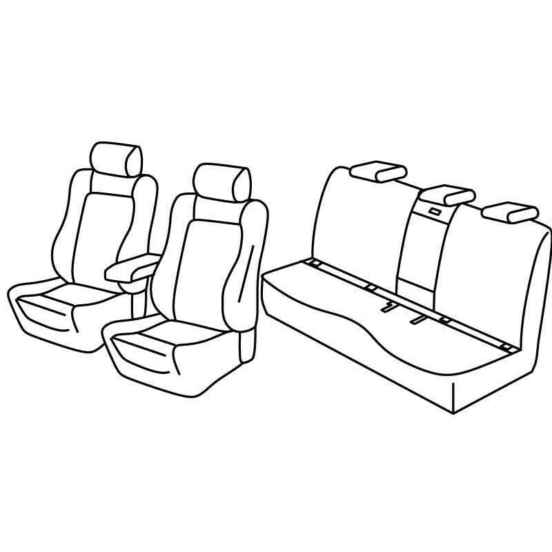 Lavorazione artigianale con tecnologia Cad/Cam e con cura nei minimi particolari per un montaggio "Perfect-Fit. Seguono scrupolosamente la sagoma dei sedili e aderiscono perfettamente come il rivestimento originale. Quando installate diventano un corpo unico con i sedili. Doppie cuciture a vista. Tessuto tecnico in poliestere, certificato Oeko-Tex© Standard 100. Altissima resistenza alla rottura, abrasione, sfregamento, peeling, scolorimento, lavaggio (standards UNI EN ISO 105X12, 105-E01, 13934-1, FIAT 50455/A/01). Non scolorisce al sole e nei ripetuti lavaggi. Imbottitura di supporto in spessa spugna antipiega da 8 mm accoppiata con maglina. Fianchi e retro elasticizzati, con spugna da 4 mm accoppiata a maglina. Taglio e cuciture simili al sedile originale. Con tasche di serie. Completo di aperture per poggiatesta, airbag e copripoggiatesta, copribraccioli, ecc. in conformità alle caratteristiche dellauto. Prodotto in Europa utilizzando tessuti italiani.