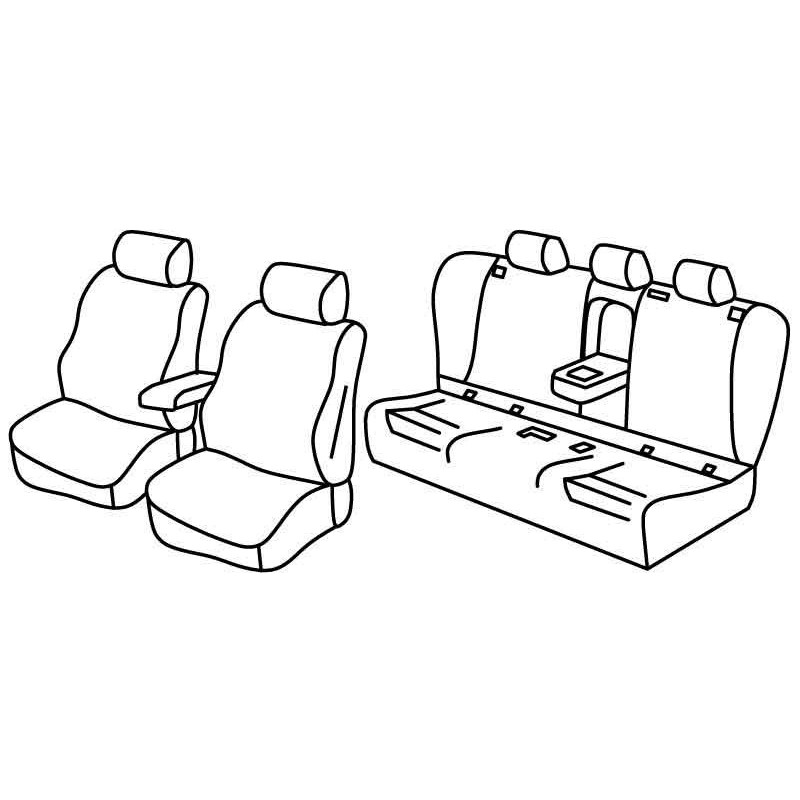 Lavorazione artigianale con tecnologia Cad/Cam e con cura nei minimi particolari per un montaggio "Perfect-Fit. Seguono scrupolosamente la sagoma dei sedili e aderiscono perfettamente come il rivestimento originale. Quando installate diventano un corpo unico con i sedili. Doppie cuciture a vista. Tessuto tecnico in poliestere, certificato Oeko-Tex© Standard 100. Altissima resistenza alla rottura, abrasione, sfregamento, peeling, scolorimento, lavaggio (standards UNI EN ISO 105X12, 105-E01, 13934-1, FIAT 50455/A/01). Non scolorisce al sole e nei ripetuti lavaggi. Imbottitura di supporto in spessa spugna antipiega da 8 mm accoppiata con maglina. Fianchi e retro elasticizzati, con spugna da 4 mm accoppiata a maglina. Taglio e cuciture simili al sedile originale. Con tasche di serie. Completo di aperture per poggiatesta, airbag e copripoggiatesta, copribraccioli, ecc. in conformità alle caratteristiche dellauto. Prodotto in Europa utilizzando tessuti italiani.