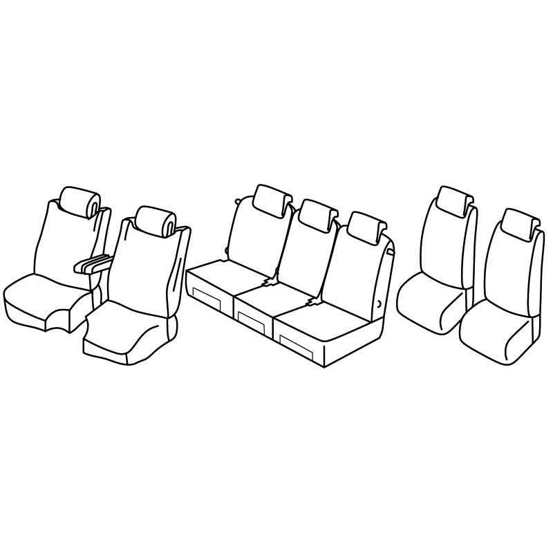 | Caratteristica | Con o senza i 2 braccioli anteriori, Sedili anteriori con retro in plastica, Poggiatesta anteriori a libro regolabili [sandwich], Schienali posteriori con maniglie per ribaltamento, 3 file di sedili, Airbag, Anche per sedili anteriori con tavolino sul retro, Sedile e schienale posteriori ripiegabili [1/3 + 1/3 + 1/3], Poggiatesta posteriori ribassati, Terza fila con 2 sedili divisi |