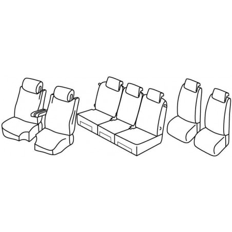| Caratteristica | Con o senza i 2 braccioli anteriori, Airbag, Poggiatesta anteriori a libro regolabili [sandwich], Schienali posteriori con maniglie per ribaltamento, Sedili anteriori con retro in plastica, Anche per sedili anteriori con tavolino sul retro, Sedile e schienale posteriori ripiegabili [1/3 + 1/3 + 1/3], Poggiatesta posteriori ribassati, Terza fila con 2 sedili divisi |