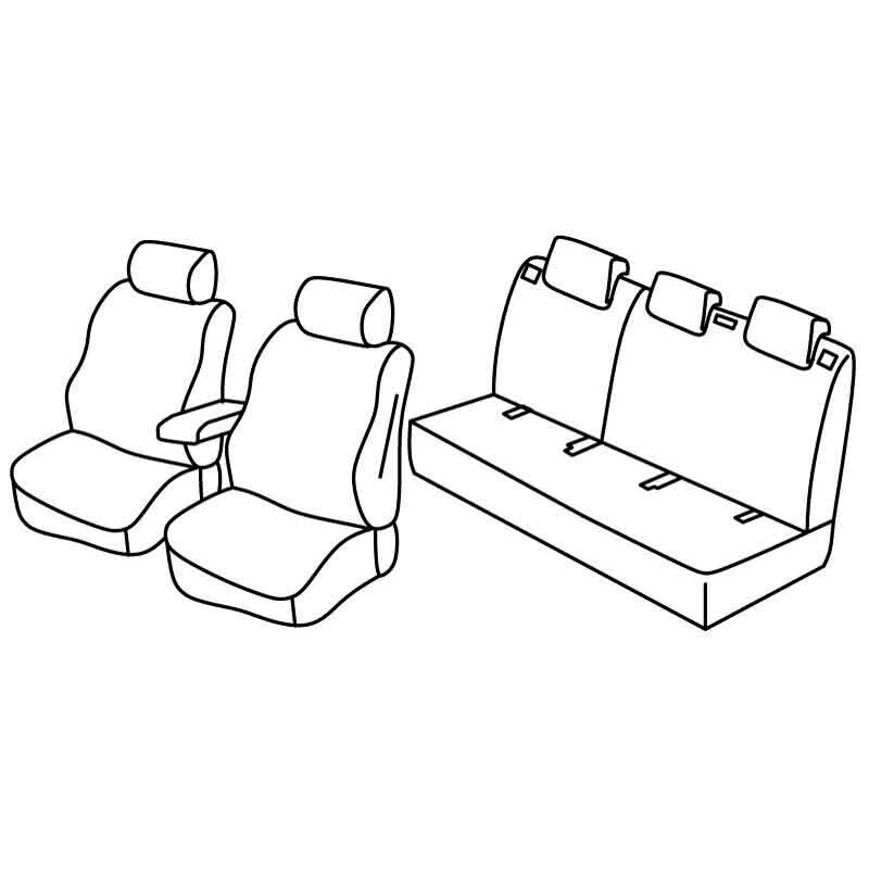 Lavorazione artigianale con tecnologia Cad/Cam e con cura nei minimi particolari per un montaggio "Perfect-Fit. Seguono scrupolosamente la sagoma dei sedili e aderiscono perfettamente come il rivestimento originale. Quando installate diventano un corpo unico con i sedili. Doppie cuciture a vista. Tessuto tecnico in poliestere, certificato Oeko-Tex© Standard 100. Altissima resistenza alla rottura, abrasione, sfregamento, peeling, scolorimento, lavaggio (standards UNI EN ISO 105X12, 105-E01, 13934-1, FIAT 50455/A/01). Non scolorisce al sole e nei ripetuti lavaggi. Imbottitura di supporto in spessa spugna antipiega da 8 mm accoppiata con maglina. Fianchi e retro elasticizzati, con spugna da 4 mm accoppiata a maglina. Taglio e cuciture simili al sedile originale. Con tasche di serie. Completo di aperture per poggiatesta, airbag e copripoggiatesta, copribraccioli, ecc. in conformità alle caratteristiche dellauto. Prodotto in Europa utilizzando tessuti italiani.