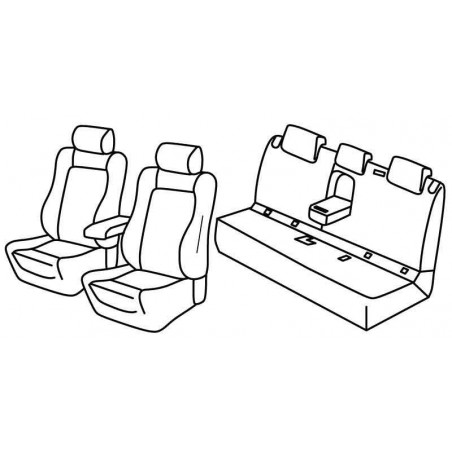 | Caratteristica | Sedile posteriore in un pezzo unico, Poggiatesta posteriori ribassati, Cintura di sicurezza centrale posteriore incorporata nello schienale, Schienale posteriore ripiegabile [1/3 + 2/3], Con o senza bracciolo anteriore, fodera copre solo la posizione arretrata, Airbag, Bracciolo posteriore con portabevande incorporato, Poggiatesta posteriore centrale non rimovibile, Sedili anteriori scorrevoli, Sedili anteriori ergonomici |