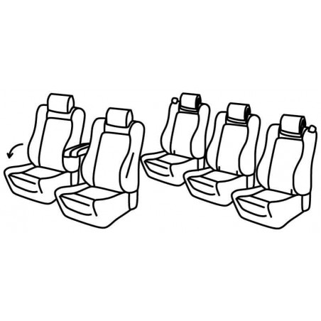 | Caratteristica | Anche per sedili anteriori con tavolino sul retro, Con o senza i 2 braccioli anteriori, Sedile passeggero ripiegabile in avanti come tavolino, Schienali con maniglie per ribaltamento, Isofix, Sedili anteriori sportivi, Airbag, Bracciolo anteriore non ricoperto dalla fodera, 3 sedili posteriori divisi, Poggiatesta posteriori ribassati |