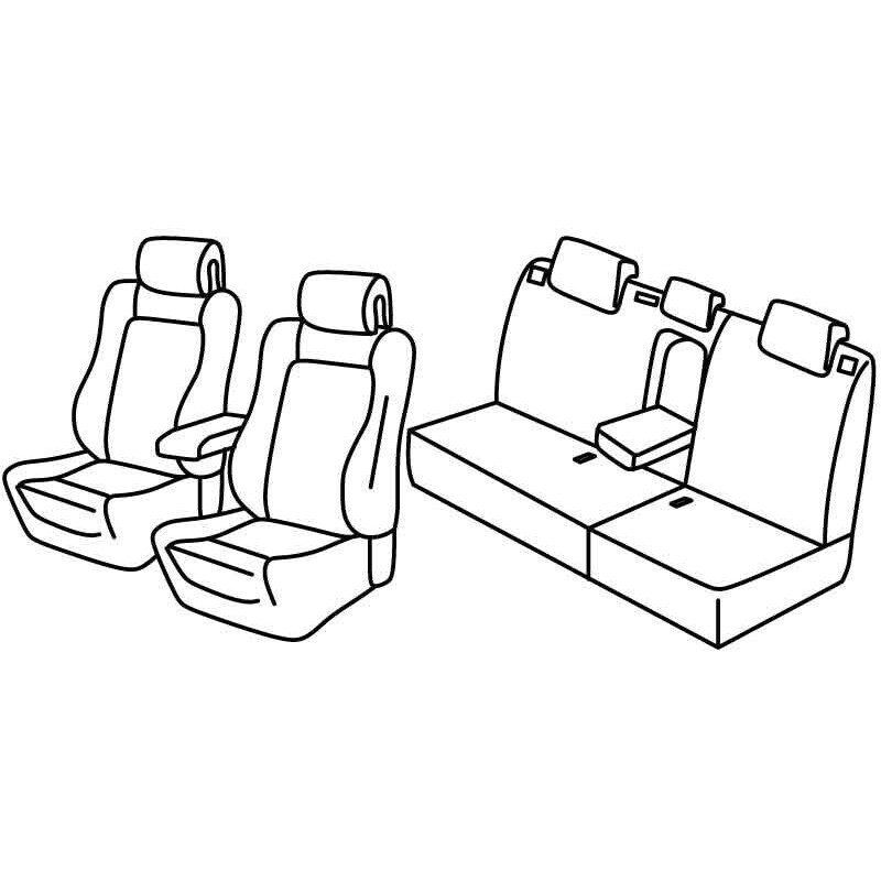 Lavorazione artigianale con tecnologia Cad/Cam e con cura nei minimi particolari per un montaggio "Perfect-Fit. Seguono scrupolosamente la sagoma dei sedili e aderiscono perfettamente come il rivestimento originale. Quando installate diventano un corpo unico con i sedili. Doppie cuciture a vista. Tessuto tecnico in poliestere, certificato Oeko-Tex© Standard 100. Altissima resistenza alla rottura, abrasione, sfregamento, peeling, scolorimento, lavaggio (standards UNI EN ISO 105X12, 105-E01, 13934-1, FIAT 50455/A/01). Non scolorisce al sole e nei ripetuti lavaggi. Imbottitura di supporto in spessa spugna antipiega da 8 mm accoppiata con maglina. Fianchi e retro elasticizzati, con spugna da 4 mm accoppiata a maglina. Taglio e cuciture simili al sedile originale. Con tasche di serie. Completo di aperture per poggiatesta, airbag e copripoggiatesta, copribraccioli, ecc. in conformità alle caratteristiche dellauto. Prodotto in Europa utilizzando tessuti italiani.