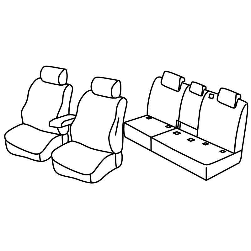 Lavorazione artigianale con tecnologia Cad/Cam e con cura nei minimi particolari per un montaggio "Perfect-Fit. Seguono scrupolosamente la sagoma dei sedili e aderiscono perfettamente come il rivestimento originale. Quando installate diventano un corpo unico con i sedili. Doppie cuciture a vista. Tessuto tecnico in poliestere, certificato Oeko-Tex© Standard 100. Altissima resistenza alla rottura, abrasione, sfregamento, peeling, scolorimento, lavaggio (standards UNI EN ISO 105X12, 105-E01, 13934-1, FIAT 50455/A/01). Non scolorisce al sole e nei ripetuti lavaggi. Imbottitura di supporto in spessa spugna antipiega da 8 mm accoppiata con maglina. Fianchi e retro elasticizzati, con spugna da 4 mm accoppiata a maglina. Taglio e cuciture simili al sedile originale. Con tasche di serie. Completo di aperture per poggiatesta, airbag e copripoggiatesta, copribraccioli, ecc. in conformità alle caratteristiche dellauto. Prodotto in Europa utilizzando tessuti italiani.