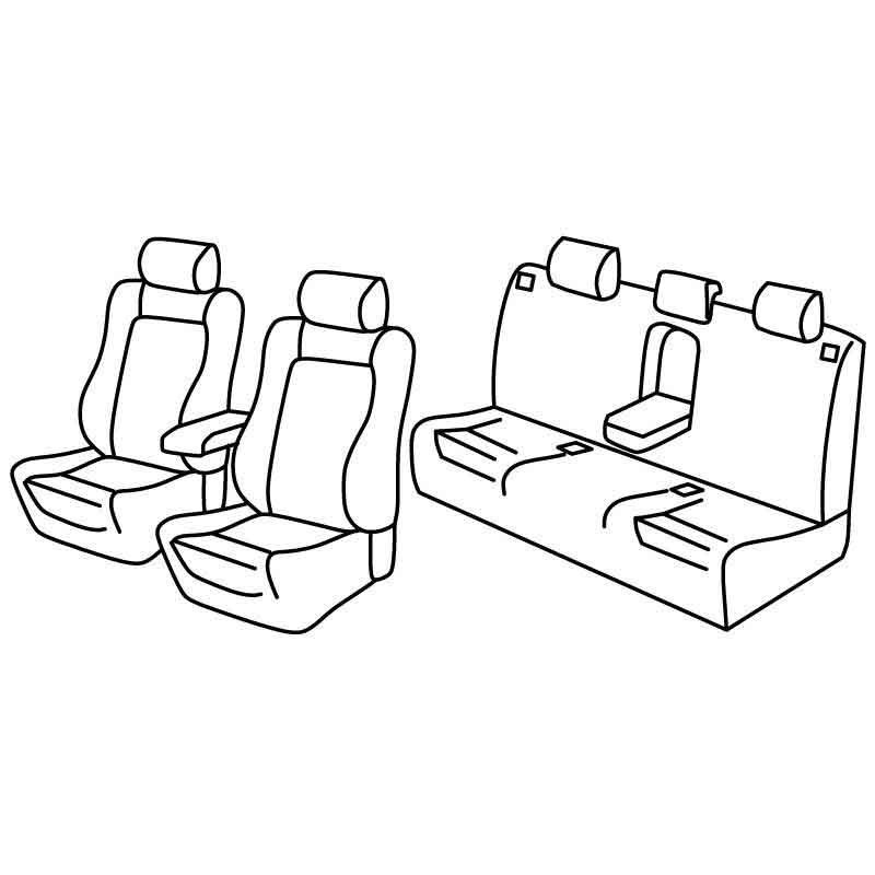 CaratteristicaSchienale e sedile posteriore in un pezzo unico, Con o senza bracciolo anteriore, Bracciolo posteriore, Sedili anteriori sportivi [tipo Recaro], 2 poggiatesta posteriori normali e 1 ribassato
