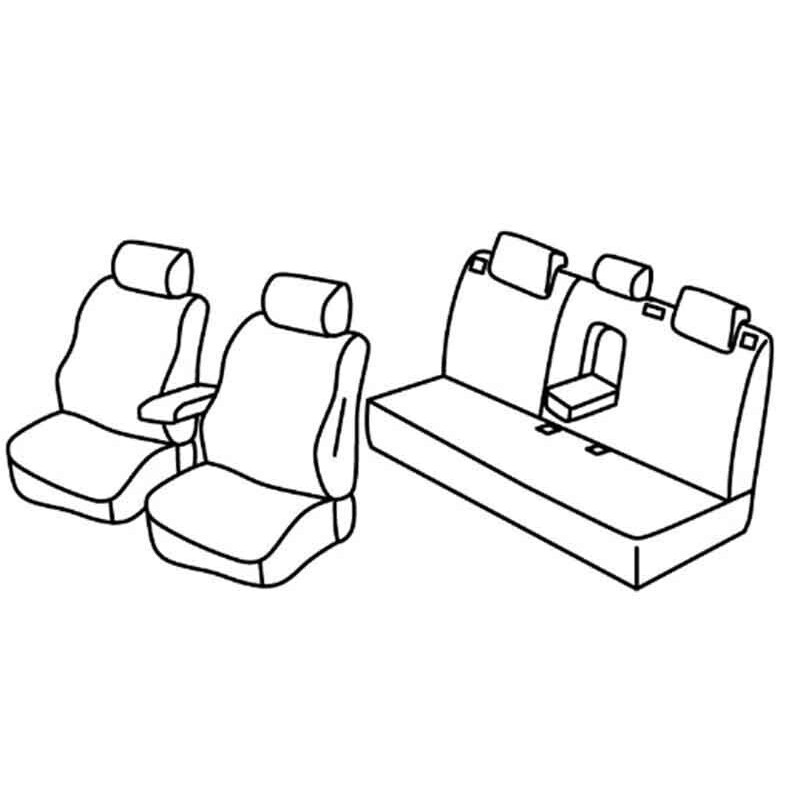Lavorazione artigianale con tecnologia Cad/Cam e con cura nei minimi particolari per un montaggio "Perfect-Fit. Seguono scrupolosamente la sagoma dei sedili e aderiscono perfettamente come il rivestimento originale. Quando installate diventano un corpo unico con i sedili. Doppie cuciture a vista. Tessuto tecnico in poliestere, certificato Oeko-Tex© Standard 100. Altissima resistenza alla rottura, abrasione, sfregamento, peeling, scolorimento, lavaggio (standards UNI EN ISO 105X12, 105-E01, 13934-1, FIAT 50455/A/01). Non scolorisce al sole e nei ripetuti lavaggi. Imbottitura di supporto in spessa spugna antipiega da 8 mm accoppiata con maglina. Fianchi e retro elasticizzati, con spugna da 4 mm accoppiata a maglina. Taglio e cuciture simili al sedile originale. Con tasche di serie. Completo di aperture per poggiatesta, airbag e copripoggiatesta, copribraccioli, ecc. in conformità alle caratteristiche dellauto. Prodotto in Europa utilizzando tessuti italiani.