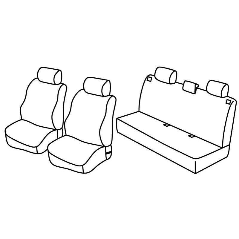 Lavorazione artigianale con tecnologia Cad/Cam e con cura nei minimi particolari per un montaggio "Perfect-Fit. Seguono scrupolosamente la sagoma dei sedili e aderiscono perfettamente come il rivestimento originale. Quando installate diventano un corpo unico con i sedili. Doppie cuciture a vista. Tessuto tecnico in poliestere, certificato Oeko-Tex© Standard 100. Altissima resistenza alla rottura, abrasione, sfregamento, peeling, scolorimento, lavaggio (standards UNI EN ISO 105X12, 105-E01, 13934-1, FIAT 50455/A/01). Non scolorisce al sole e nei ripetuti lavaggi. Imbottitura di supporto in spessa spugna antipiega da 8 mm accoppiata con maglina. Fianchi e retro elasticizzati, con spugna da 4 mm accoppiata a maglina. Taglio e cuciture simili al sedile originale. Con tasche di serie. Completo di aperture per poggiatesta, airbag e copripoggiatesta, copribraccioli, ecc. in conformità alle caratteristiche dellauto. Prodotto in Europa utilizzando tessuti italiani.