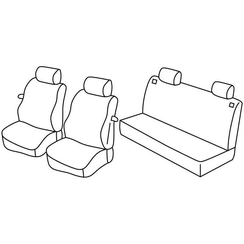 Lavorazione artigianale con tecnologia Cad/Cam e con cura nei minimi particolari per un montaggio "Perfect-Fit. Seguono scrupolosamente la sagoma dei sedili e aderiscono perfettamente come il rivestimento originale. Quando installate diventano un corpo unico con i sedili. Doppie cuciture a vista. Tessuto tecnico in poliestere, certificato Oeko-Tex© Standard 100. Altissima resistenza alla rottura, abrasione, sfregamento, peeling, scolorimento, lavaggio (standards UNI EN ISO 105X12, 105-E01, 13934-1, FIAT 50455/A/01). Non scolorisce al sole e nei ripetuti lavaggi. Imbottitura di supporto in spessa spugna antipiega da 8 mm accoppiata con maglina. Fianchi e retro elasticizzati, con spugna da 4 mm accoppiata a maglina. Taglio e cuciture simili al sedile originale. Con tasche di serie. Completo di aperture per poggiatesta, airbag e copripoggiatesta, copribraccioli, ecc. in conformità alle caratteristiche dellauto. Prodotto in Europa utilizzando tessuti italiani.