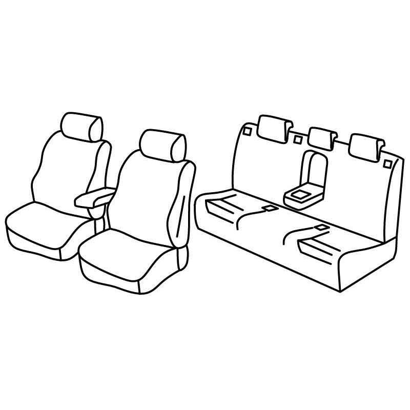 Lavorazione artigianale con tecnologia Cad/Cam e con cura nei minimi particolari per un montaggio "Perfect-Fit. Seguono scrupolosamente la sagoma dei sedili e aderiscono perfettamente come il rivestimento originale. Quando installate diventano un corpo unico con i sedili. Doppie cuciture a vista. Tessuto tecnico in poliestere, certificato Oeko-Tex© Standard 100. Altissima resistenza alla rottura, abrasione, sfregamento, peeling, scolorimento, lavaggio (standards UNI EN ISO 105X12, 105-E01, 13934-1, FIAT 50455/A/01). Non scolorisce al sole e nei ripetuti lavaggi. Imbottitura di supporto in spessa spugna antipiega da 8 mm accoppiata con maglina. Fianchi e retro elasticizzati, con spugna da 4 mm accoppiata a maglina. Taglio e cuciture simili al sedile originale. Con tasche di serie. Completo di aperture per poggiatesta, airbag e copripoggiatesta, copribraccioli, ecc. in conformità alle caratteristiche dellauto. Prodotto in Europa utilizzando tessuti italiani.