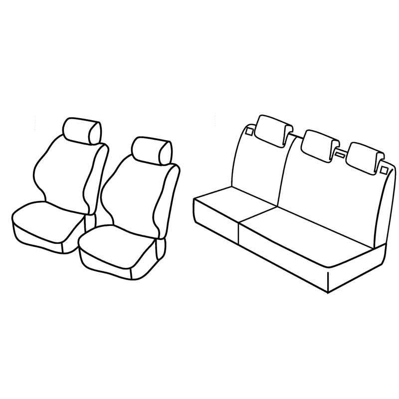 Lavorazione artigianale con tecnologia Cad/Cam e con cura nei minimi particolari per un montaggio "Perfect-Fit. Seguono scrupolosamente la sagoma dei sedili e aderiscono perfettamente come il rivestimento originale. Quando installate diventano un corpo unico con i sedili. Doppie cuciture a vista. Tessuto tecnico in poliestere, certificato Oeko-Tex© Standard 100. Altissima resistenza alla rottura, abrasione, sfregamento, peeling, scolorimento, lavaggio (standards UNI EN ISO 105X12, 105-E01, 13934-1, FIAT 50455/A/01). Non scolorisce al sole e nei ripetuti lavaggi. Imbottitura di supporto in spessa spugna antipiega da 8 mm accoppiata con maglina. Fianchi e retro elasticizzati, con spugna da 4 mm accoppiata a maglina. Taglio e cuciture simili al sedile originale. Con tasche di serie. Completo di aperture per poggiatesta, airbag e copripoggiatesta, copribraccioli, ecc. in conformità alle caratteristiche dellauto. Prodotto in Europa utilizzando tessuti italiani.