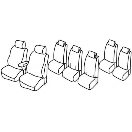 | Caratteristica | Isofix, Poggiatesta anteriori non rimovibili, Poggiatesta posteriori ribassati, 3 file di sedili, Seconda fila con 3 sedili posteriori divisi, Terza fila con 2 sedili divisi, Con o senza bracciolo anteriore, Airbag, Sedile posteriore con 2 fori per cintura |