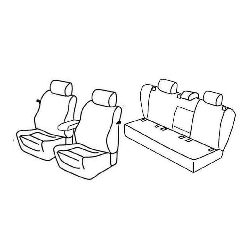 Lavorazione artigianale con tecnologia Cad/Cam e con cura nei minimi particolari per un montaggio "Perfect-Fit. Seguono scrupolosamente la sagoma dei sedili e aderiscono perfettamente come il rivestimento originale. Quando installate diventano un corpo unico con i sedili. Doppie cuciture a vista. Tessuto tecnico in poliestere, certificato Oeko-Tex© Standard 100. Altissima resistenza alla rottura, abrasione, sfregamento, peeling, scolorimento, lavaggio (standards UNI EN ISO 105X12, 105-E01, 13934-1, FIAT 50455/A/01). Non scolorisce al sole e nei ripetuti lavaggi. Imbottitura di supporto in spessa spugna antipiega da 8 mm accoppiata con maglina. Fianchi e retro elasticizzati, con spugna da 4 mm accoppiata a maglina. Taglio e cuciture simili al sedile originale. Con tasche di serie. Completo di aperture per poggiatesta, airbag e copripoggiatesta, copribraccioli, ecc. in conformità alle caratteristiche dellauto. Prodotto in Europa utilizzando tessuti italiani.