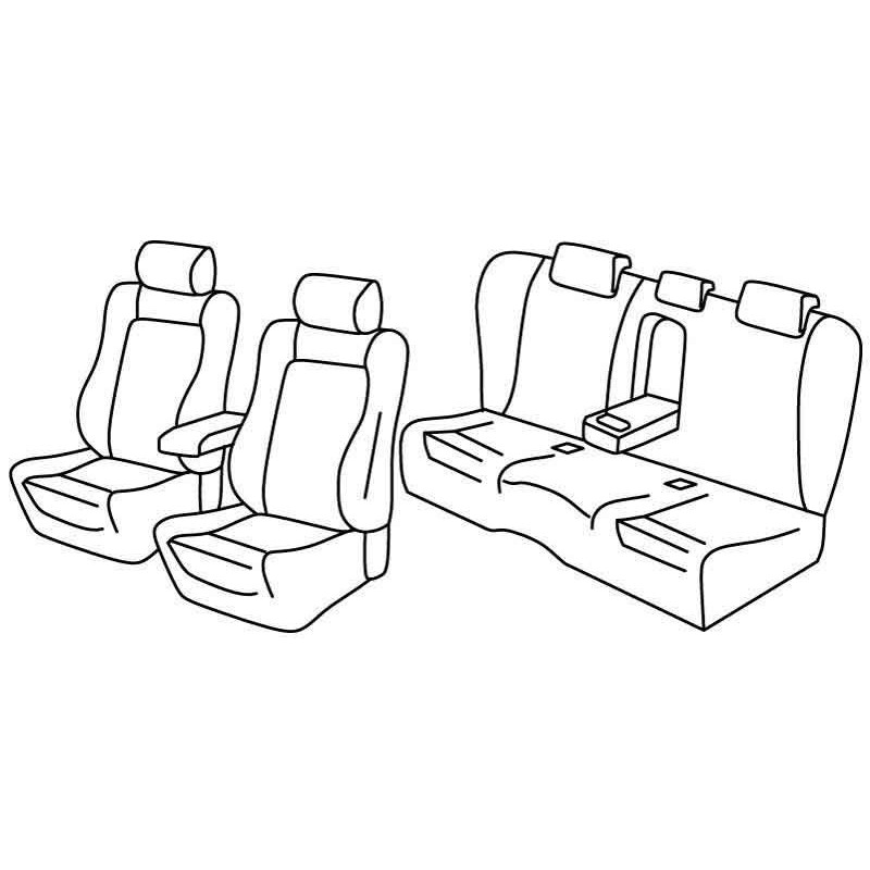 Lavorazione artigianale con tecnologia Cad/Cam e con cura nei minimi particolari per un montaggio "Perfect-Fit. Seguono scrupolosamente la sagoma dei sedili e aderiscono perfettamente come il rivestimento originale. Quando installate diventano un corpo unico con i sedili. Doppie cuciture a vista. Tessuto tecnico in poliestere, certificato Oeko-Tex© Standard 100. Altissima resistenza alla rottura, abrasione, sfregamento, peeling, scolorimento, lavaggio (standards UNI EN ISO 105X12, 105-E01, 13934-1, FIAT 50455/A/01). Non scolorisce al sole e nei ripetuti lavaggi. Imbottitura di supporto in spessa spugna antipiega da 8 mm accoppiata con maglina. Fianchi e retro elasticizzati, con spugna da 4 mm accoppiata a maglina. Taglio e cuciture simili al sedile originale. Con tasche di serie. Completo di aperture per poggiatesta, airbag e copripoggiatesta, copribraccioli, ecc. in conformità alle caratteristiche dellauto. Prodotto in Europa utilizzando tessuti italiani.
