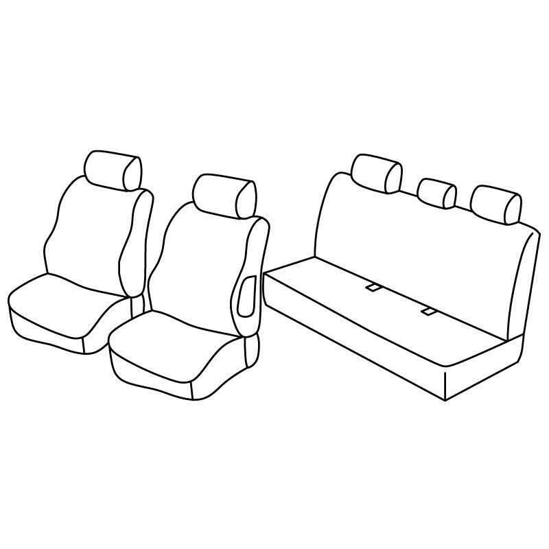 Lavorazione artigianale con tecnologia Cad/Cam e con cura nei minimi particolari per un montaggio "Perfect-Fit. Seguono scrupolosamente la sagoma dei sedili e aderiscono perfettamente come il rivestimento originale. Quando installate diventano un corpo unico con i sedili. Doppie cuciture a vista. Tessuto tecnico in poliestere, certificato Oeko-Tex© Standard 100. Altissima resistenza alla rottura, abrasione, sfregamento, peeling, scolorimento, lavaggio (standards UNI EN ISO 105X12, 105-E01, 13934-1, FIAT 50455/A/01). Non scolorisce al sole e nei ripetuti lavaggi. Imbottitura di supporto in spessa spugna antipiega da 8 mm accoppiata con maglina. Fianchi e retro elasticizzati, con spugna da 4 mm accoppiata a maglina. Taglio e cuciture simili al sedile originale. Con tasche di serie. Completo di aperture per poggiatesta, airbag e copripoggiatesta, copribraccioli, ecc. in conformità alle caratteristiche dellauto. Prodotto in Europa utilizzando tessuti italiani.