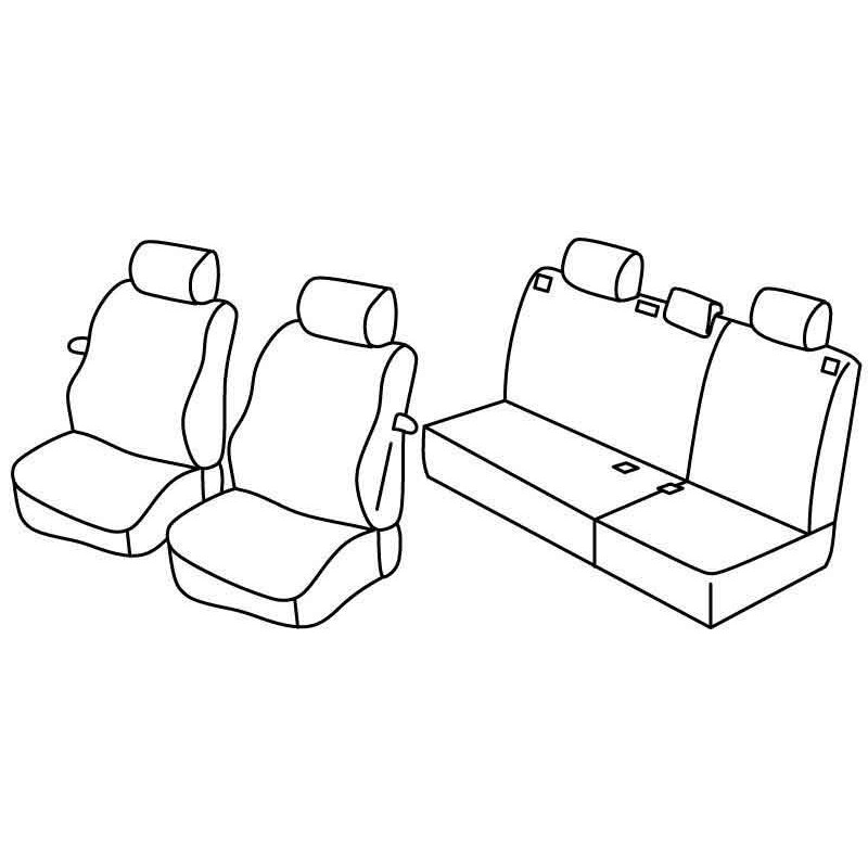 Lavorazione artigianale con tecnologia Cad/Cam e con cura nei minimi particolari per un montaggio "Perfect-Fit. Seguono scrupolosamente la sagoma dei sedili e aderiscono perfettamente come il rivestimento originale. Quando installate diventano un corpo unico con i sedili. Doppie cuciture a vista. Tessuto tecnico in poliestere, certificato Oeko-Tex© Standard 100. Altissima resistenza alla rottura, abrasione, sfregamento, peeling, scolorimento, lavaggio (standards UNI EN ISO 105X12, 105-E01, 13934-1, FIAT 50455/A/01). Non scolorisce al sole e nei ripetuti lavaggi. Imbottitura di supporto in spessa spugna antipiega da 8 mm accoppiata con maglina. Fianchi e retro elasticizzati, con spugna da 4 mm accoppiata a maglina. Taglio e cuciture simili al sedile originale. Con tasche di serie. Completo di aperture per poggiatesta, airbag e copripoggiatesta, copribraccioli, ecc. in conformità alle caratteristiche dellauto. Prodotto in Europa utilizzando tessuti italiani.