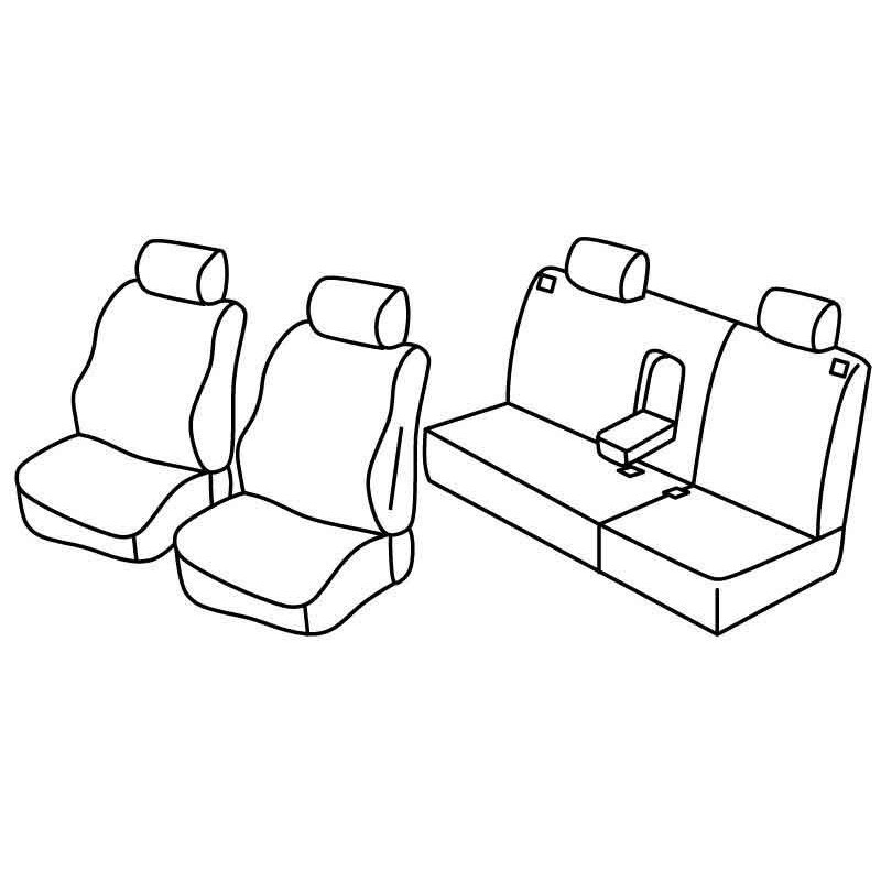 Lavorazione artigianale con tecnologia Cad/Cam e con cura nei minimi particolari per un montaggio "Perfect-Fit. Seguono scrupolosamente la sagoma dei sedili e aderiscono perfettamente come il rivestimento originale. Quando installate diventano un corpo unico con i sedili. Doppie cuciture a vista. Tessuto tecnico in poliestere, certificato Oeko-Tex© Standard 100. Altissima resistenza alla rottura, abrasione, sfregamento, peeling, scolorimento, lavaggio (standards UNI EN ISO 105X12, 105-E01, 13934-1, FIAT 50455/A/01). Non scolorisce al sole e nei ripetuti lavaggi. Imbottitura di supporto in spessa spugna antipiega da 8 mm accoppiata con maglina. Fianchi e retro elasticizzati, con spugna da 4 mm accoppiata a maglina. Taglio e cuciture simili al sedile originale. Con tasche di serie. Completo di aperture per poggiatesta, airbag e copripoggiatesta, copribraccioli, ecc. in conformità alle caratteristiche dellauto. Prodotto in Europa utilizzando tessuti italiani.