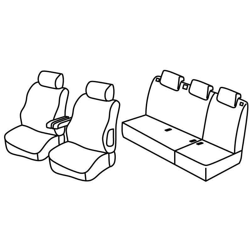CaratteristicaAnche per sedili anteriori con tavolino sul retro, Poggiatesta posteriori ribassati, Sedile e schienale posteriori ripiegabili [2/3 + 1/3], Con o senza i 2 braccioli anteriori, Copertura airbag in plastica, Cintura di sicurezza centrale posteriore incorporata nello schienale