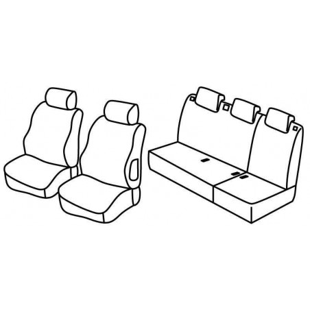 CaratteristicaSedile e schienale posteriori ripiegabili [2/3 + 1/3], Poggiatesta posteriori ribassati, Anche per sedili anteriori con tavolino sul retro, Cintura di sicurezza centrale posteriore incorporata nello schienale, Copertura airbag in plastica